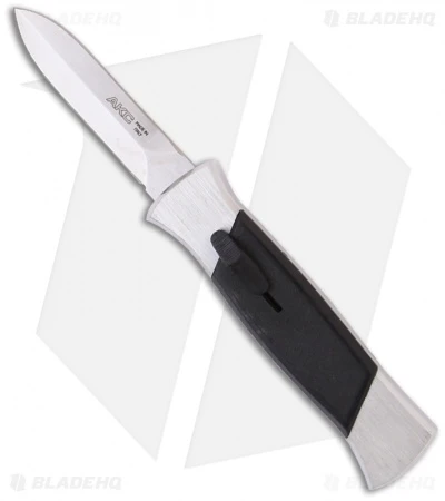 The AKC 777 Blackfinger is an Italian-made OTF knife with a double-action, automatic firing mechanism. It has a large aluminum handle that provides a solid feel and a comfortable grip for light duty cutting tasks. The blade is made from stainless steel with a stamped AKC logo. These come in a variety of blade and handle color options for every possible taste.