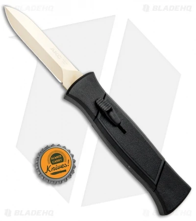 The AKC 777 Blackfinger is an Italian-made OTF knife with a double-action, automatic firing mechanism. It has a large aluminum handle that provides a solid feel and a comfortable grip for light duty cutting tasks. The blade is made from stainless steel with a stamped AKC logo. These come in a variety of blade and handle color options for every possible taste.