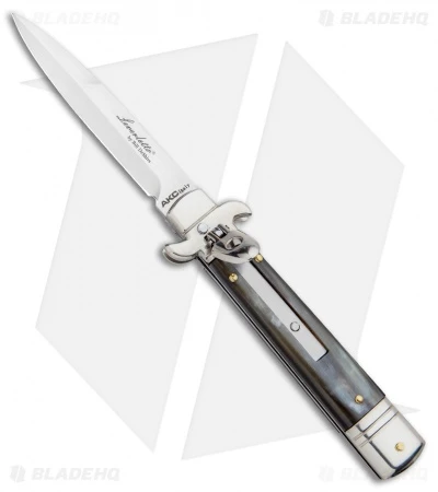 This 7.75″ Italian Stiletto from AKC comes in the Leverletto style with a Brazilian horn handle and a bayonet blade. AKC specializes in collectible Italian stilettos made with traditional knife-making techniques. The blade comes in a bayonet style with a plain edge and a satin finish. Add classic Italian style to your collection with the AKC 7.75″ Leverletto stiletto.