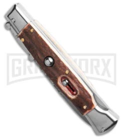 AKC Smarty Red W/Black Bolster Automatic Knife Reverse Tanto – Black SW Plain